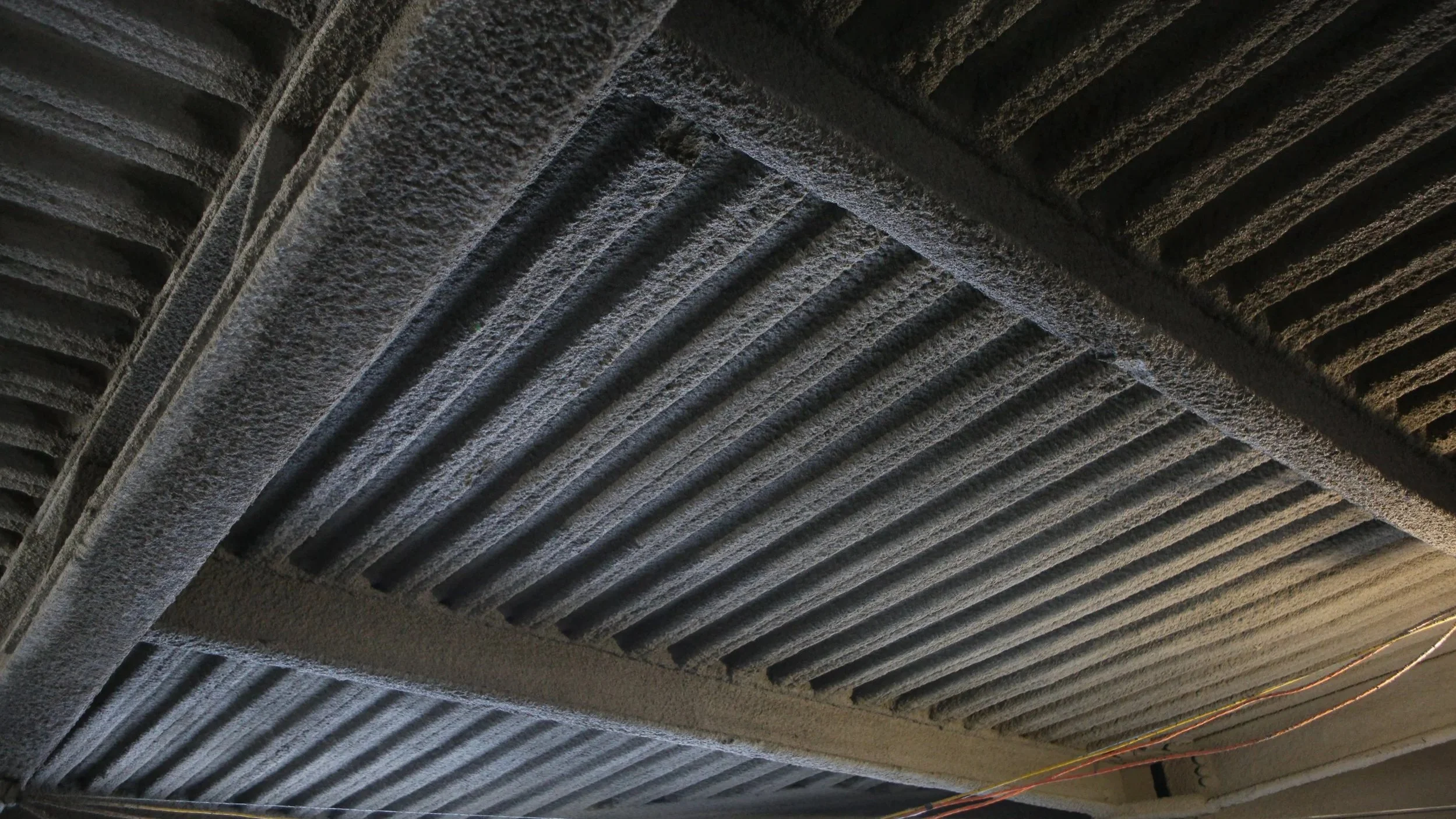 Island is a licensed applicator of several brands of spray on fiber and polyurethane insulation. This can be used instead of blankets or boards for a more effective method of insulating areas such as parking garages, soffits or any hard access area.